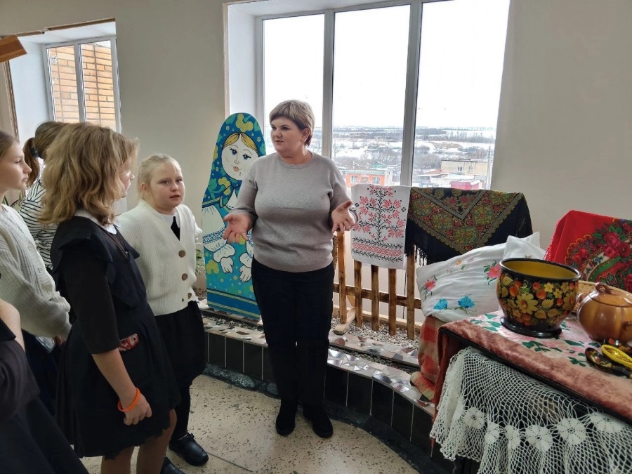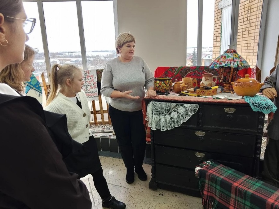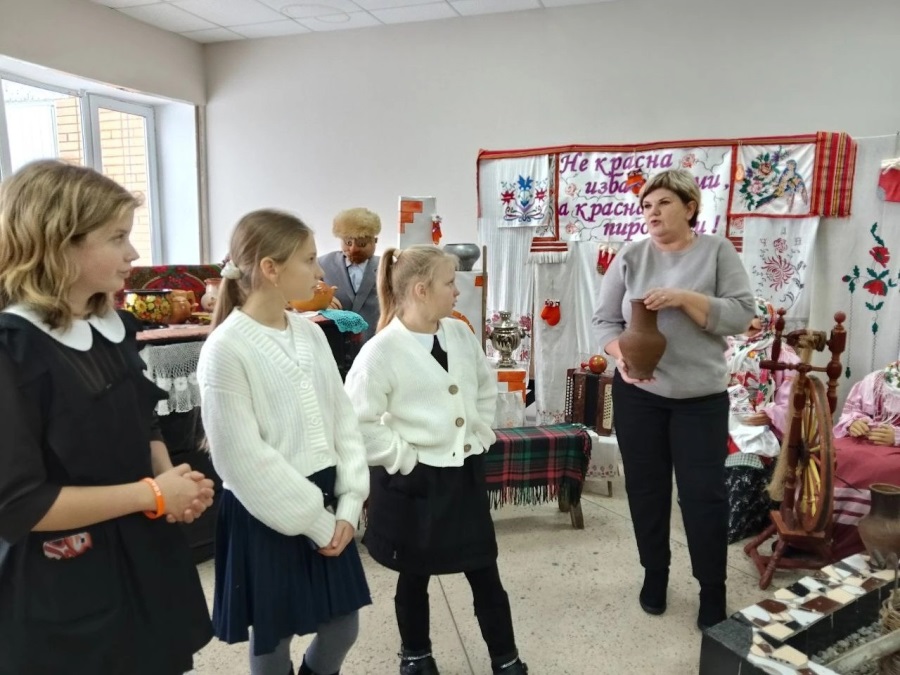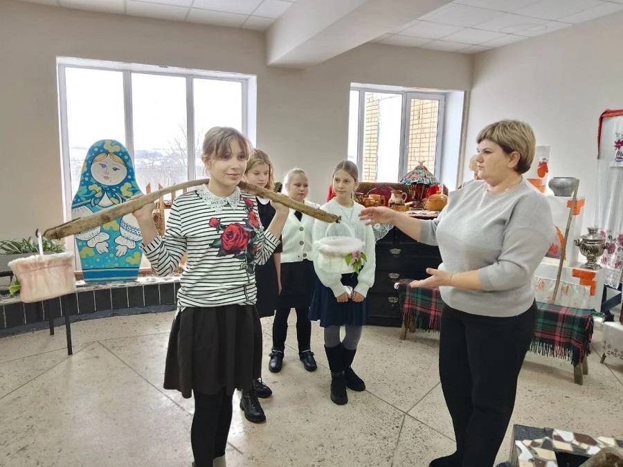 Гости познакомились с предметами быта, орудиями труда и рукоделием наших предков.