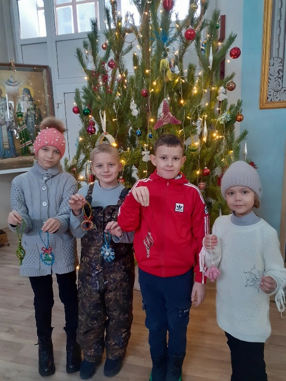 Ребята своими руками мастерили ёлочные игрушки, рождественских Ангелочков, тематические поделки.