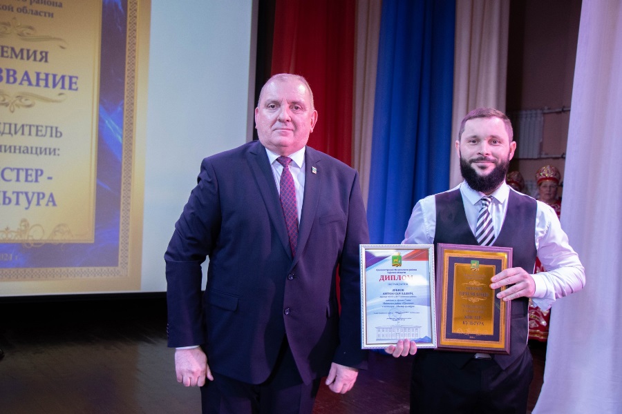 В номинации «Мистер Культура» победителем премии Главы Медвенского района признан Зубков Антон Сергеевич, директор Центра народного творчества Медвенского района.