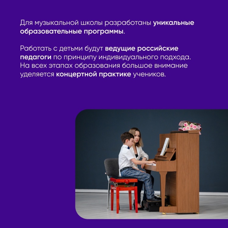 Сейчас на федеральной территории работает Высшая школа музыки. За два года работы обучение на предпрофильных программах прошли почти 50 школьников.