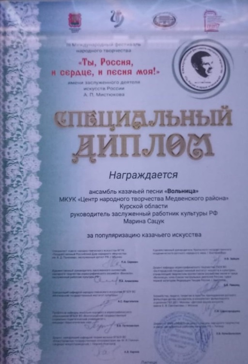 Народный ансамбль казачьей песни Вольница представил Курскую область на Международном фестивале народного творчества имени заслуженного деятеля искусств России А. П. Мистюкова «Ты, Россия, и сердце, и песня моя!» в минувшие выходные.