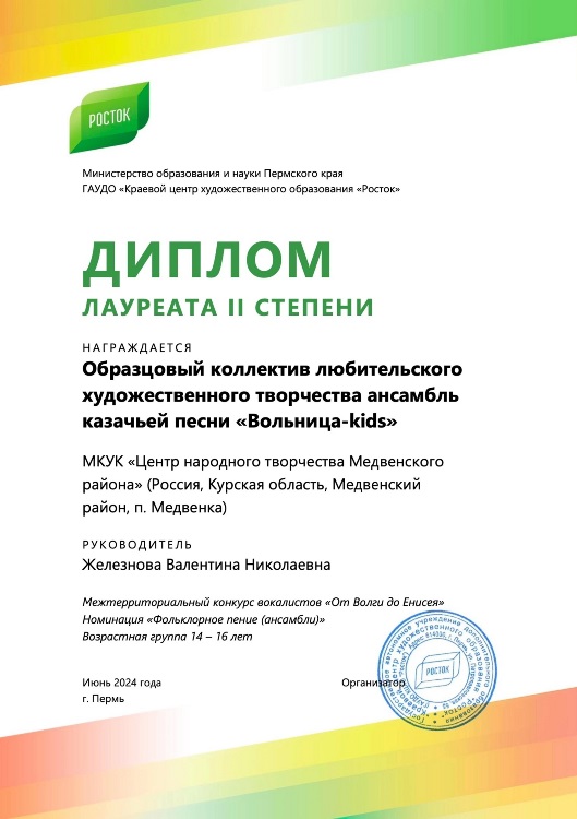 Образцовый ансамбль казачьей песни "Вольница-kids" - ЛАУРЕАТ 2 степени