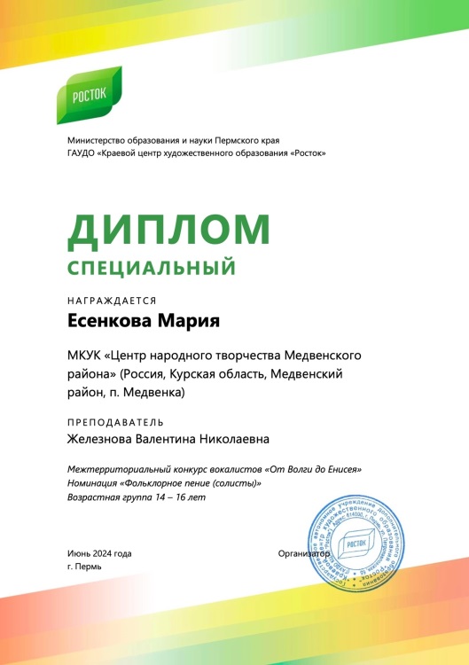 ЕСЕНКОВА МАРИЯ - СПЕЦИАЛЬНЫЙ ДИПЛОМ
