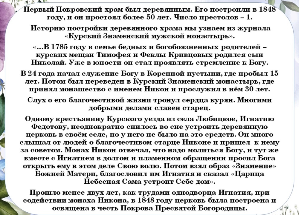 По православной традиции храм освятили в престольный праздник. Праздничное Богослужение и освящение храма совершил митрополит Курский и Рыльский Герман. Храм освятили после ремонта.