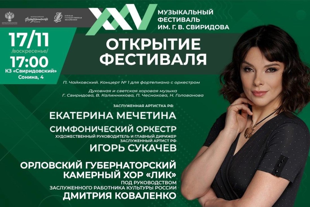 Со сцены прозвучат классические произведения в исполнении заслуженной артистки России Екатерины Мечетиной и симфонического оркестра Курской государственной филармонии под управлением заслуженного артиста России Игоря Сукачева. Зрители услышат Концерт №1 для фортепиано с оркестром П.И. Чайковского. Орловский губернаторский камерный хор «Лик» исполнит духовные и светские хоровые произведения Георгия Свиридова и других отечественных композиторов.