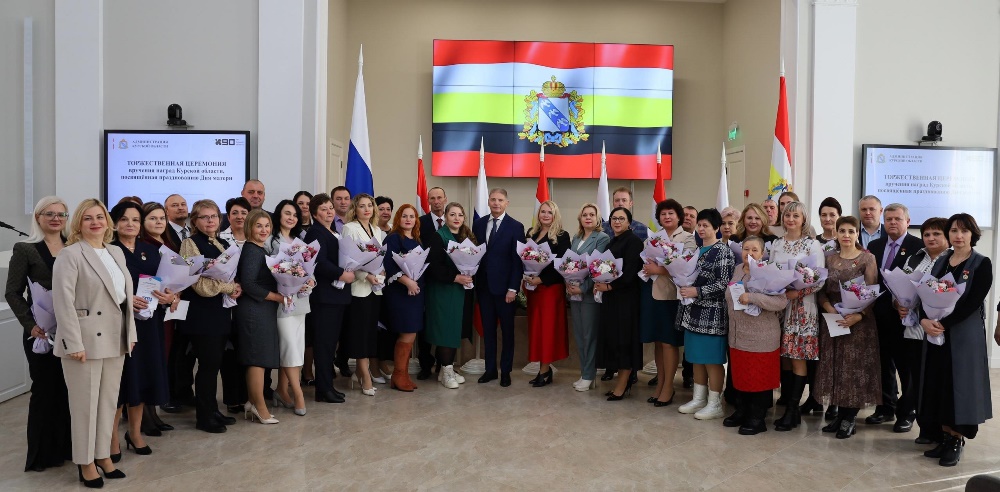 В Доме Советов прошла церемония награждения родителей нагрудным знаком «За заслуги в воспитании детей», почетным знаком «Материнская слава – Отцовская доблесть», медалью «Мать героя». В мероприятии принял участие заместитель губернатора Курской области Андрей Белостоцкий.