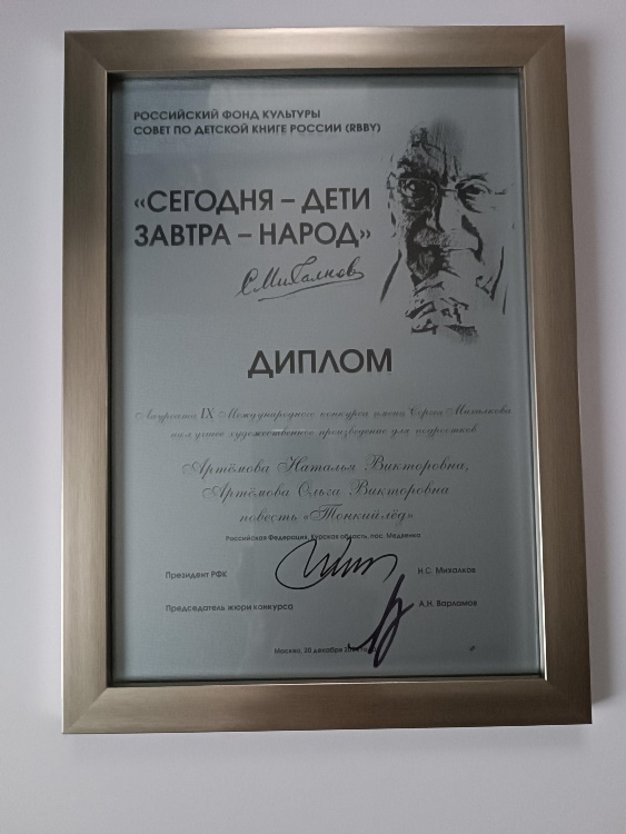20 декабря 2024 года в Москве в Российском Фонде культуры состоялось подведение итогов IX Международного литературного конкурса имени Сергея Михалкова на лучшее художественное произведение для подростков. Лауреатами его во второй раз стали курские писатели Ольга и Наталья Артёмовы. И это – признание высочайшего мастерства наших авторов, их профессионализма.