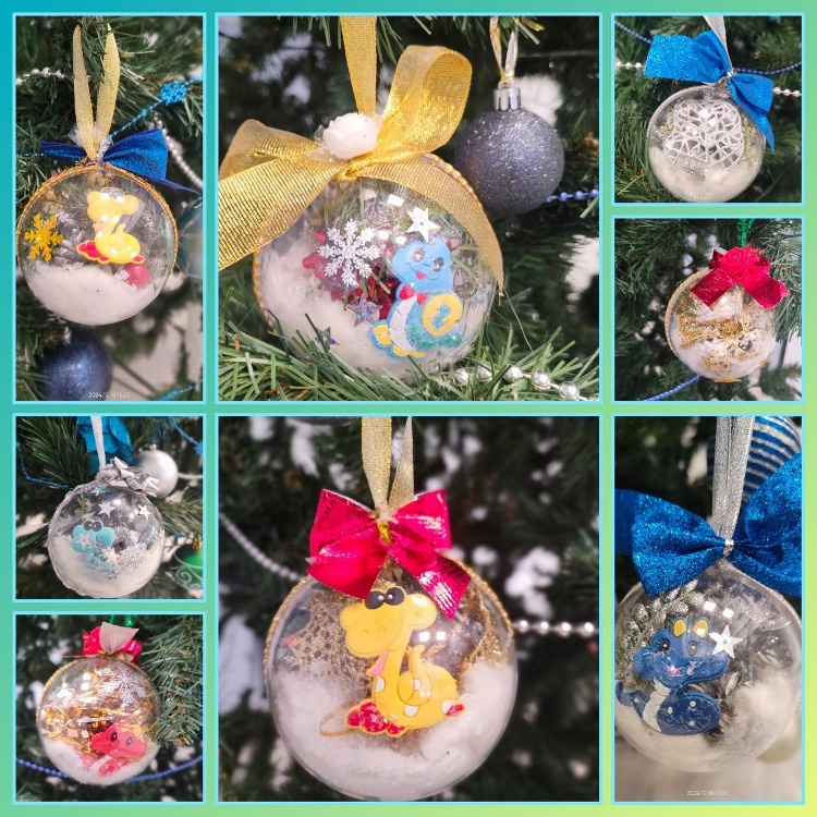 Созданные своими руками новогодние игрушки ребята повесили на ёлку. Такие милые поделки создают праздничное настроение и помогают весело встретить Новый год!
