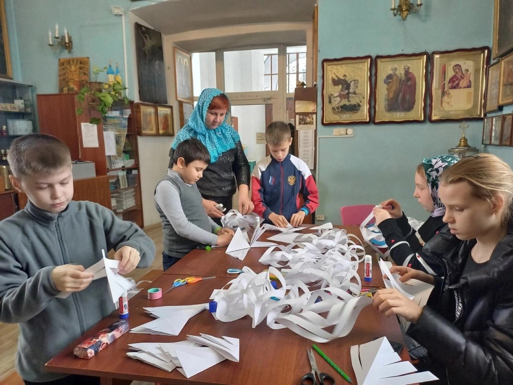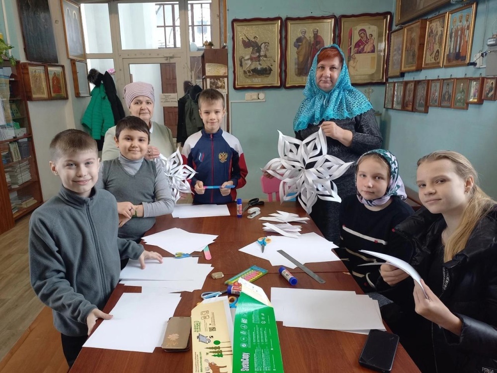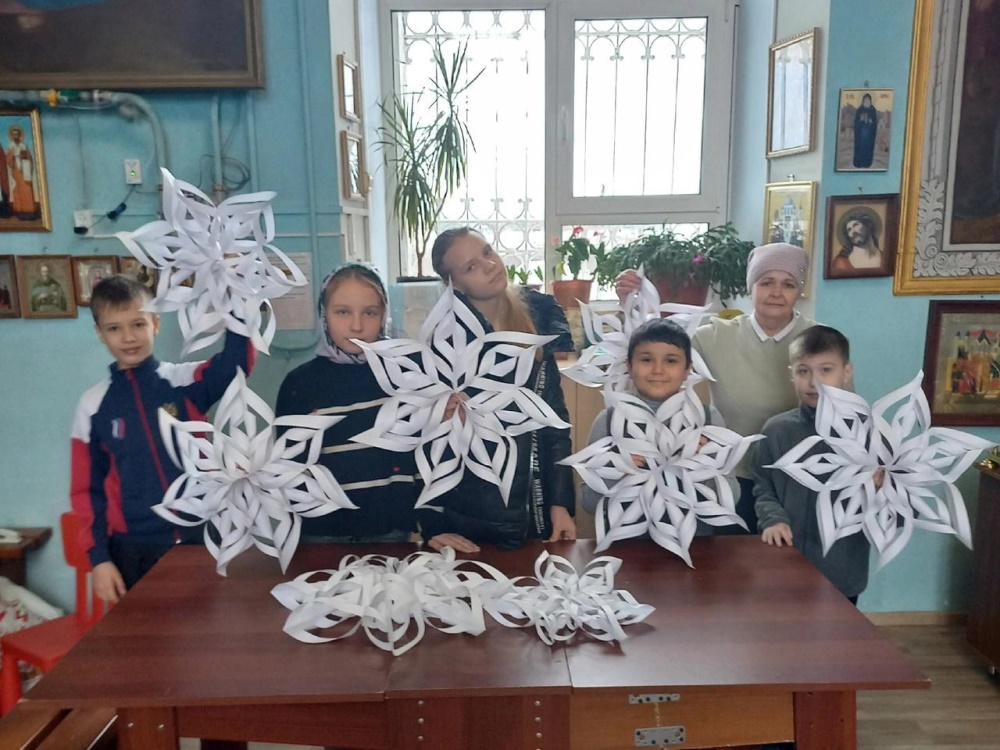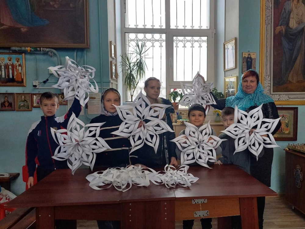 На уроке ручного труда прошел час творчества "Новогодние фантазии", где ребята старательно, с вдохновением вырезали и делали объёмные снежинки. Впереди у воспитанников воскресной школы еще много приятных хлопот, связанных с этим удивительным праздником!