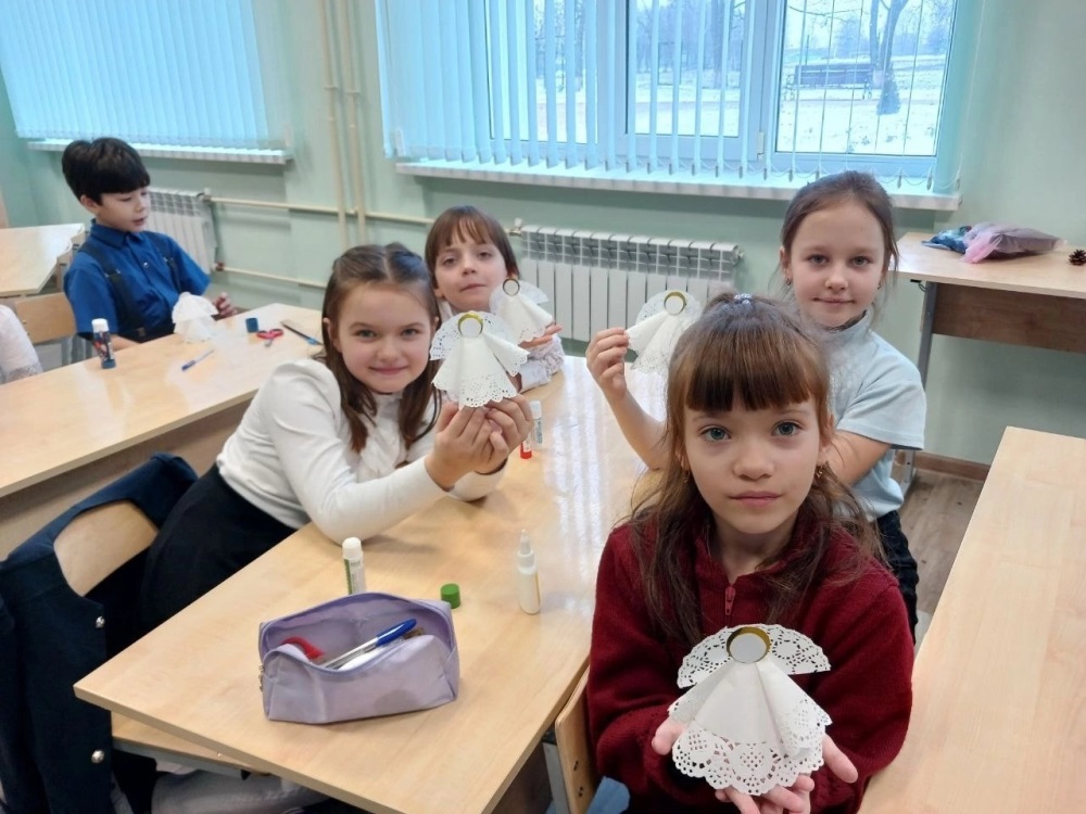 В канун православного праздника Крещения заведующей Реутчанским клубом досуга был проведен в мастер-класс по изготовлению сувенира "Ангел" в Вышнереутчанской школе.
