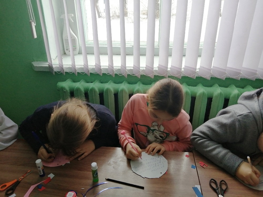 Специалисты Коммунарского сельского Дома культуры провели мастер-класс "Медаль солдату" с детьми младших классов к 23 февраля. На обратной стороне школьники написали свои поздравления.
