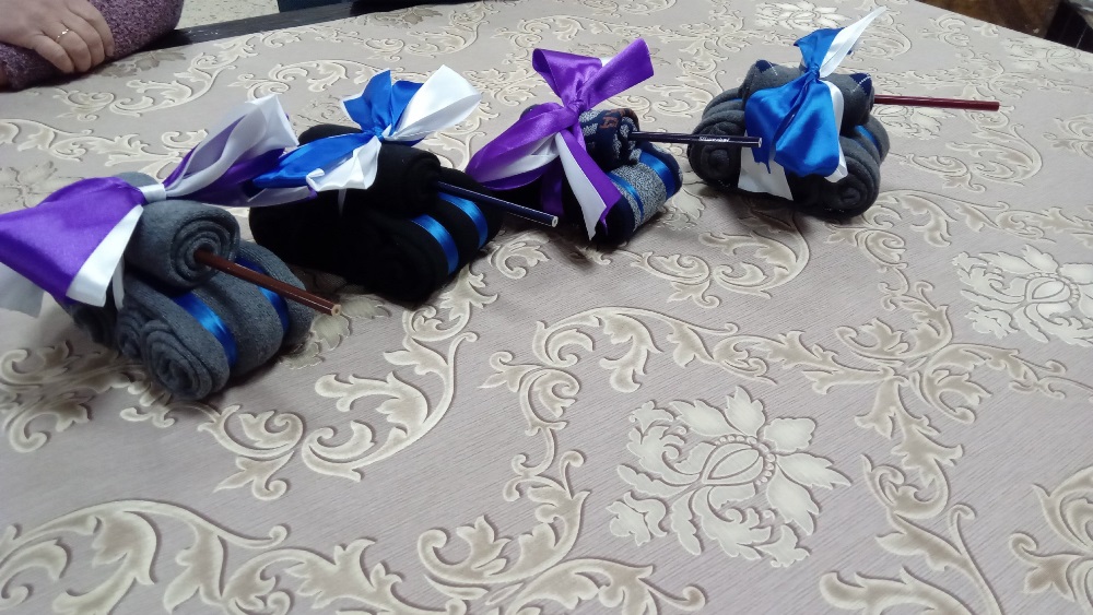 Минимум затрат и подарок своими руками готов. Для одного такого сувенирного танка необходимо приобрести 3 пары носков, ленту для украшения, обычную авторучку или карандаш. Присоединяйтесь!!!
