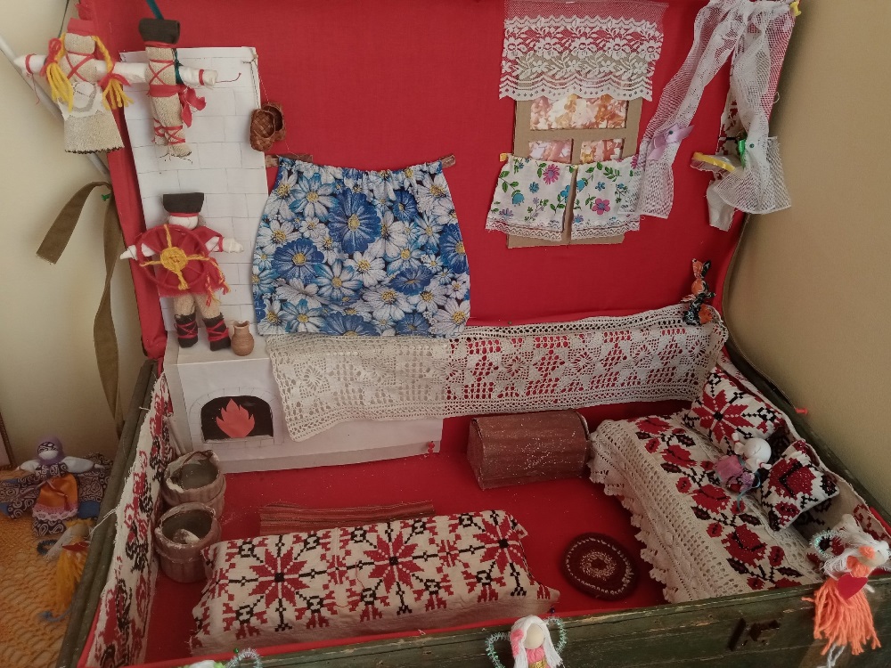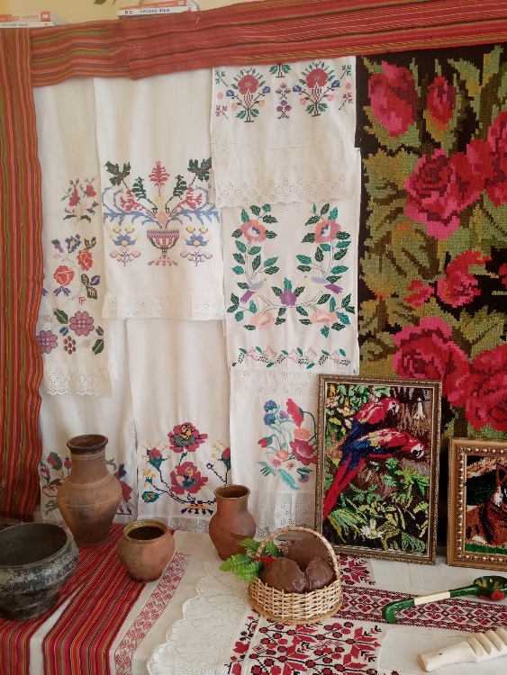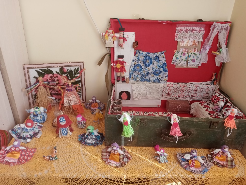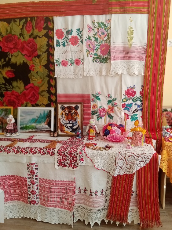 На выставке были представлены предметы старинного быта, экспонаты, демонстрирующие традиционные ремесла: прядение, ткачество, вышивка, народный костюм.