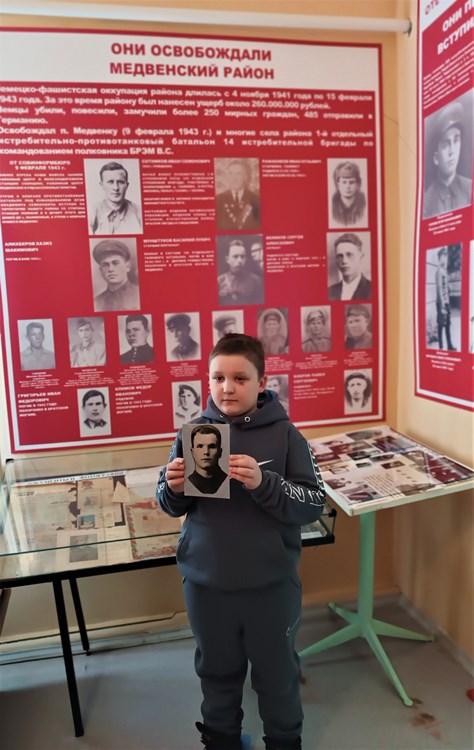 На фото в музее имени Д.Я. Самоквасова мы видим двоюродных внуков уроженца деревни Нижний Дубовец партизанского командира Т.В. Фильчакова Ваню и Алёшу.