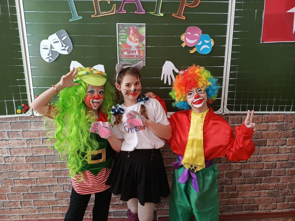 Ну, и конечно же, не обошлось без веселой фотосессии в роли актеров театра и цирка: "клоуна, клоунессы, котиков, девочки-веселушки" и др.