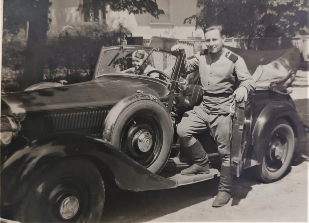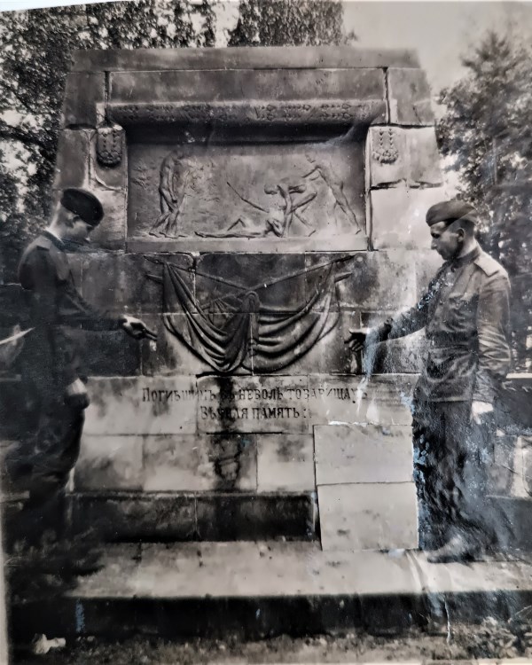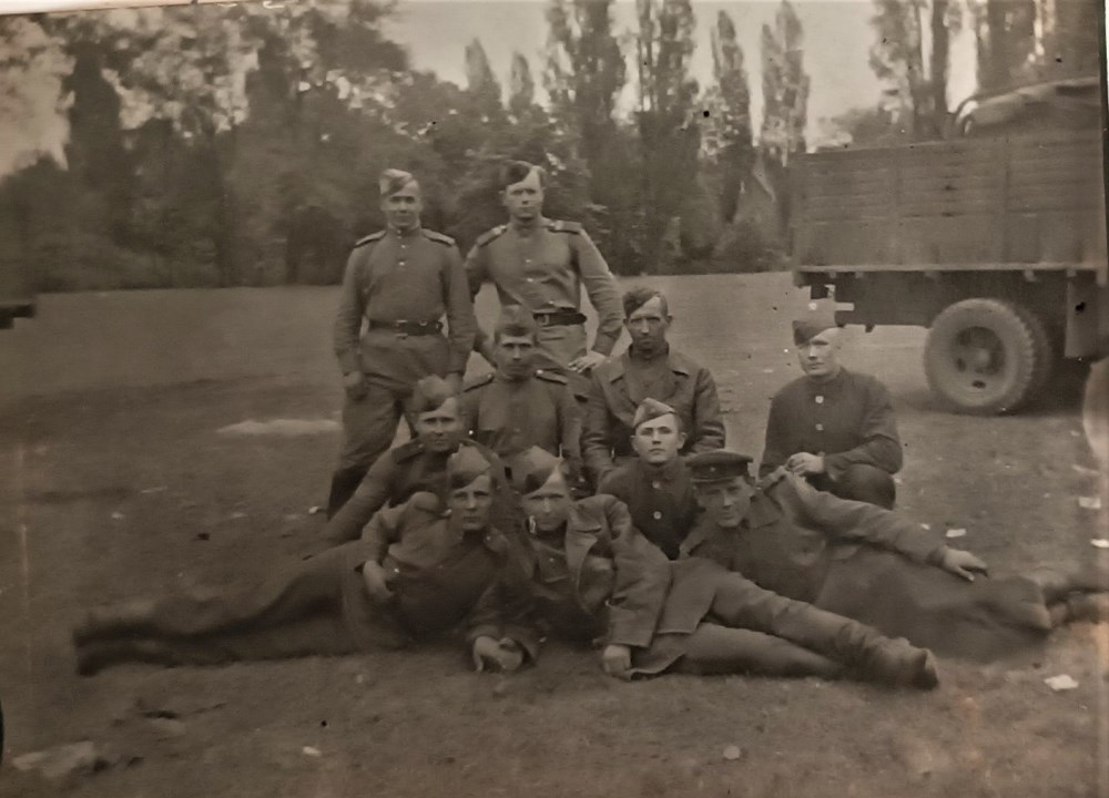 «Медвенская рота» пополняется бойцами Любицкого. Вглядитесь в эти лица. Лётчик Лобынцев, совершивший воздушный таран. Шофёр Пахомов в Берлине. В кабине – немецкий мальчик. Эта фотография всё говорит о душевной чистоте наших солдат. Освободители в Дахау…