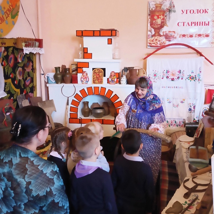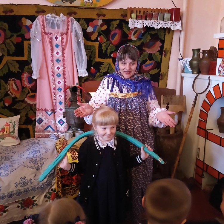 Ребята с удовольствием пробовали вытащить чугун с едой из печи, поставить в печь хлеб, познакомились с различными музыкальным инструментами, заглянули в сундук и узнали, что хранили в них наши предки!