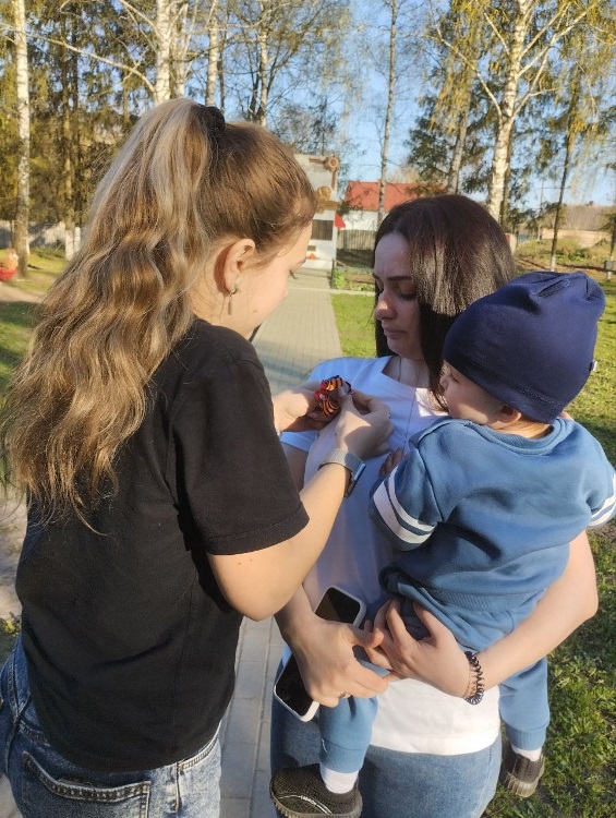 Дети изготовили и вручили прохожим главный символ Дня Победы — георгиевскую ленту, как знак благодарности и уважения к подвигу защитников Родины!