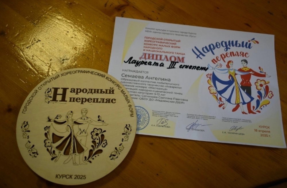 Солистки Образцового коллектива "Акварель" Медвенской детской школы искусств приняли участие в городском открытом хореографическом конкурсе малых форм народного и национального танца "Народный перепляс", который прошел в городе Курске.
