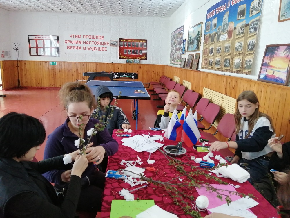 Сегодня "Праздника весны и труда" - 1 мая, работники культуры провели мастер-класс "Веточка яблони".