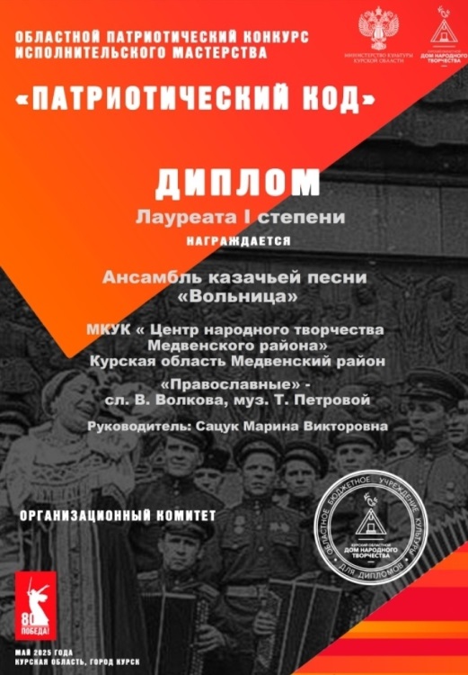 "ВОЛЬНИЦА" - Лауреат I степени областного патриотического конкурса исполнительского мастерства «Патриотический код»!