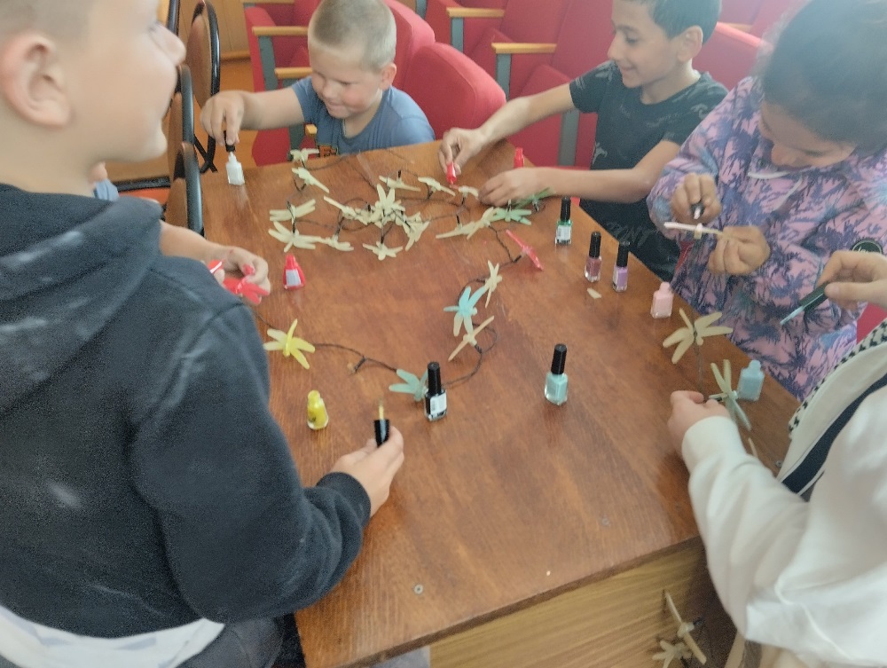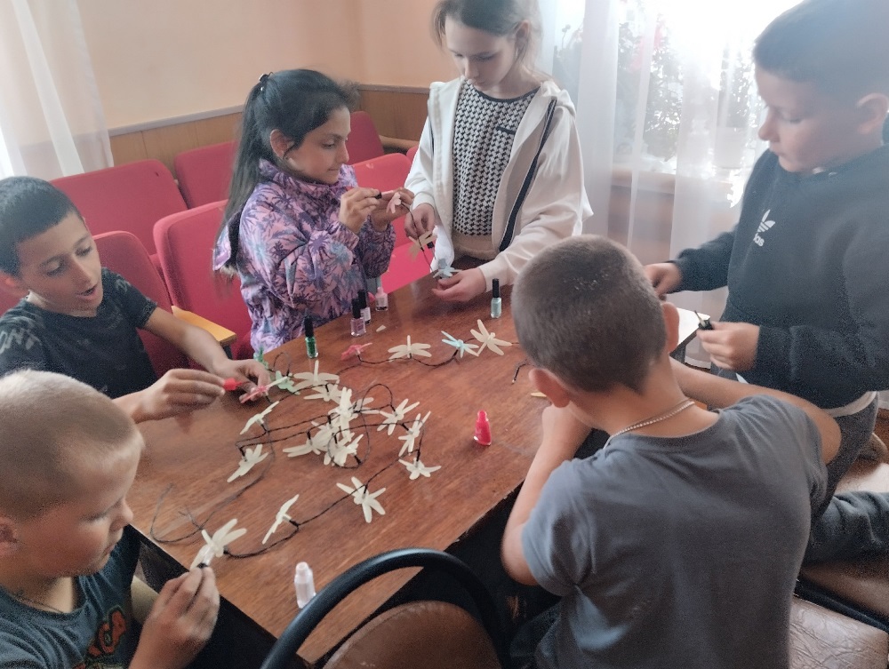 Из плотного прозрачного пластика вырезали бабочек, разукрасили их, а затем при помощи клеевого пистолета приклеили шнур и украшение готово.