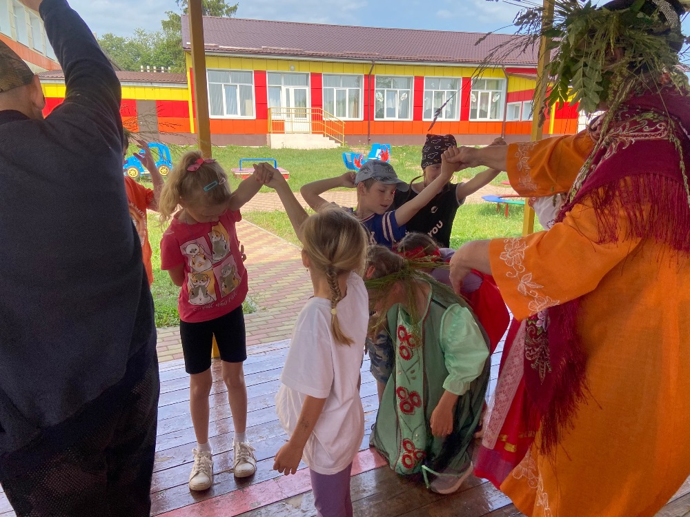 Вышнереутчанский СДК совместно с библиотекой и Реутчанским клубом досуга объединили свои усилия, чтобы подарить детям пришкольного лагеря и воспитанникам детского сада игровую программу "Троица Зелёная".
