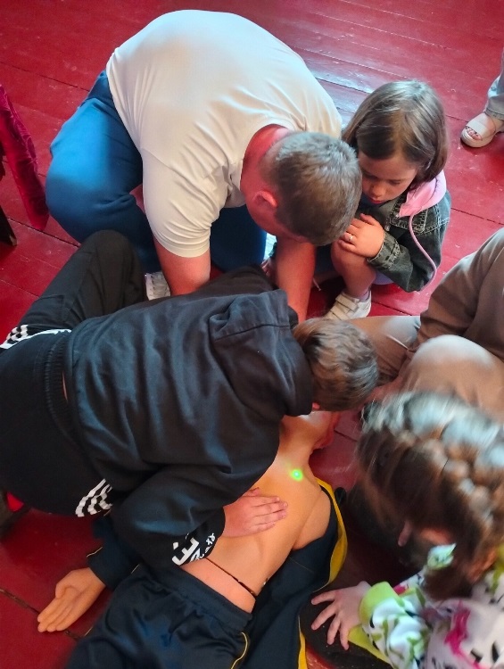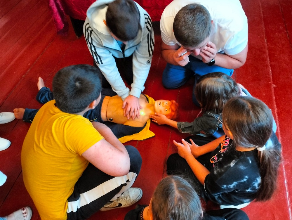 Ребята и девчонки познакомились с основными правилами пользования электричеством в быту и на улице, узнали как оказывать первую медицинскую помощь и сразу отработали эти навыки на тренажёре "Гоша".