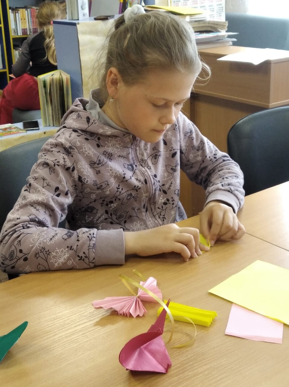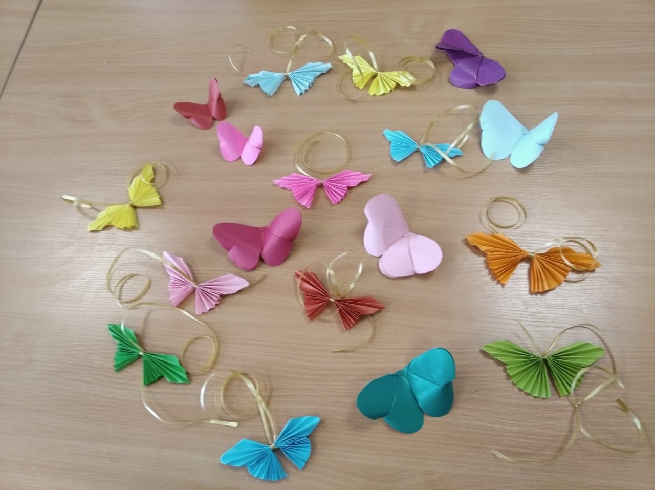И сегодня с девочками младших классов прошел мастер – класс по созданию бабочек в стиле оригами. Дети с удовольствием и интересом создали своих бабочек. Получилось очень красиво - разноцветных, красивейших, которые могут стать украшением для дома.