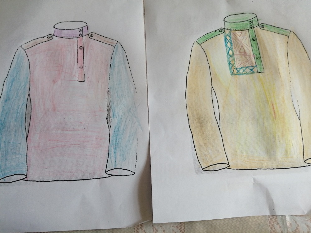 Ребятам были предложены косоворотки, которые они смогли примерить на себя. Затем дети приняли участие в предложенных конкурсах и играх «Завяжи,развяжи», «Укрась рубаху», и др.