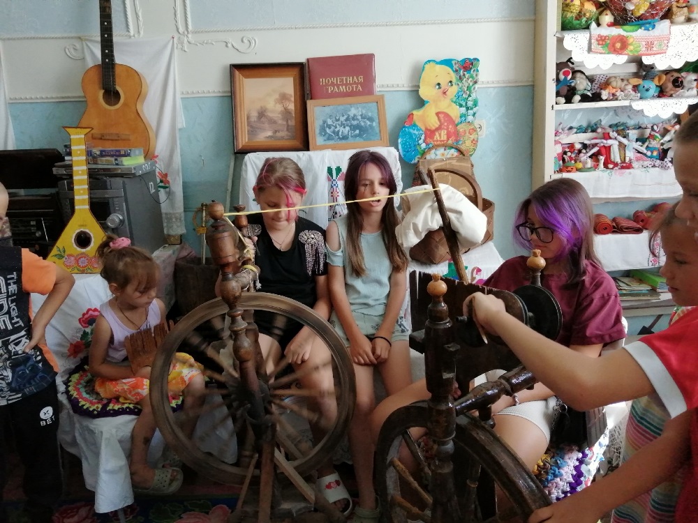 Ребята узнали историю появления ручной прялки, самопрялки, которые использовались для древнейшего ремесла — прядения. Узнали о том, что прядение было самым трудоемким из всех видов работ, ложившейся на плечи женщины.