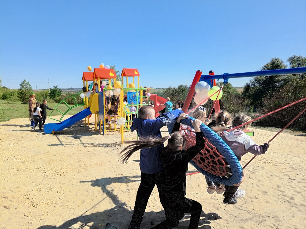 Сегодня в Амосовке состоялось торжественное открытие детской спортивно-игровой площадки.