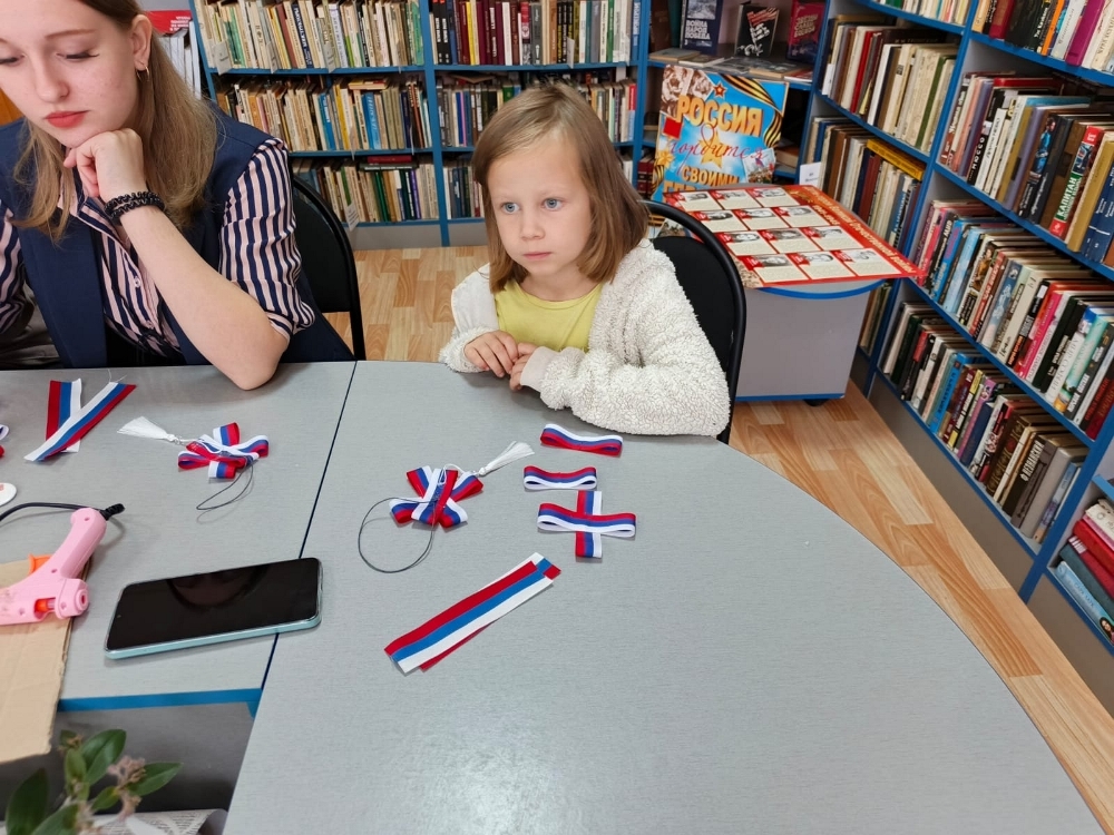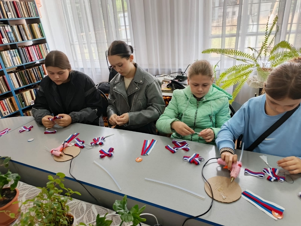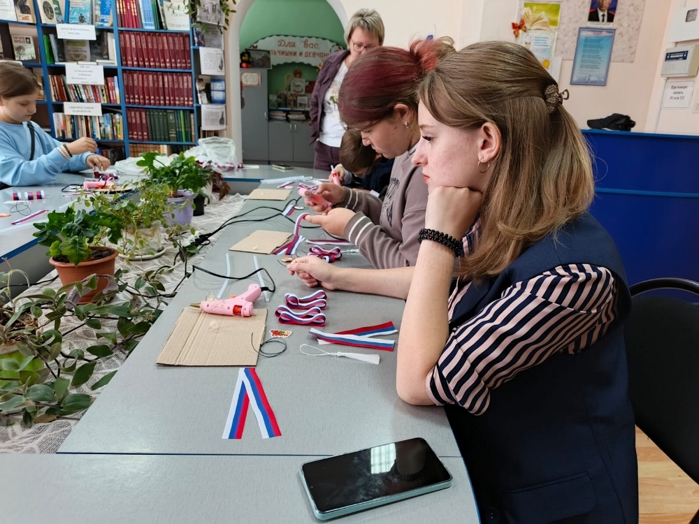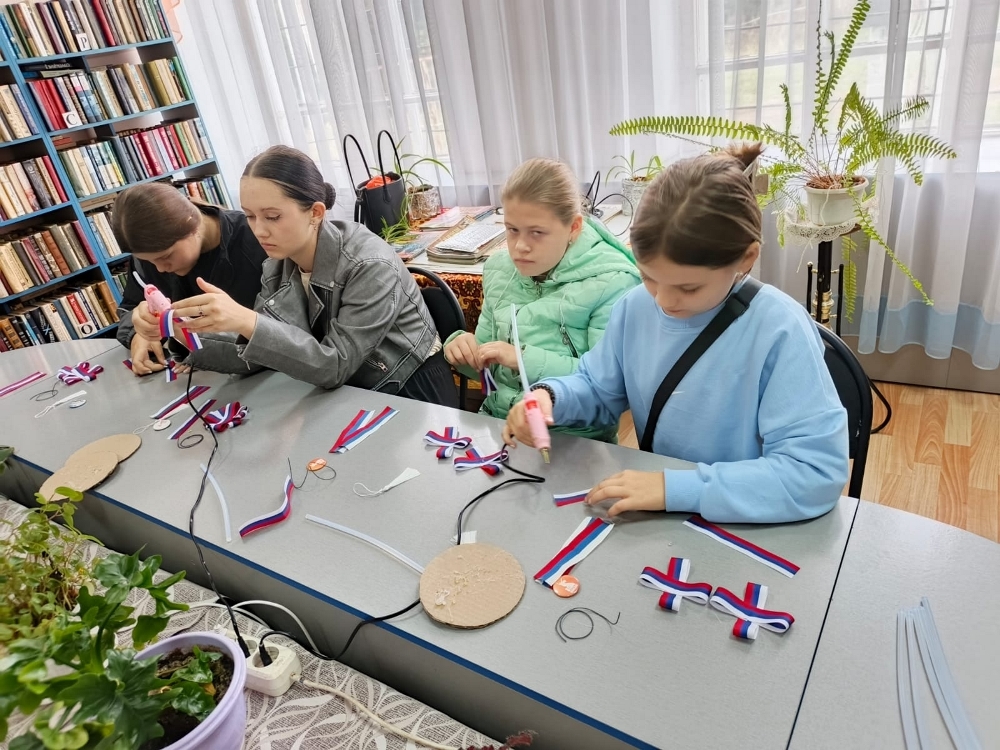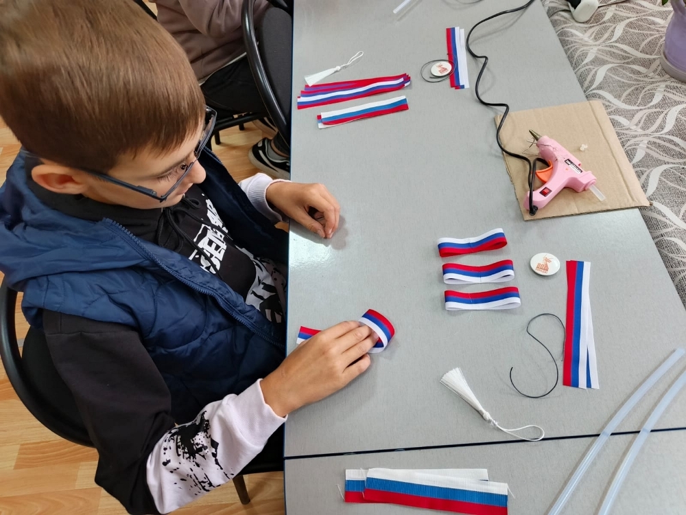 Мастер-класс по изготовлению подвесок из лент триколор для школьников прошло в рамках "Года Защитника Отечества".