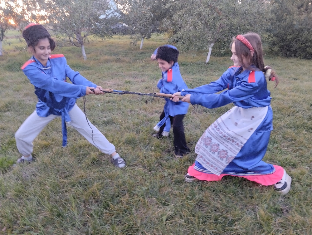 Игровая программа позволяет ребятам познать культуру самобытности казачьих обрядов, игр, песен.