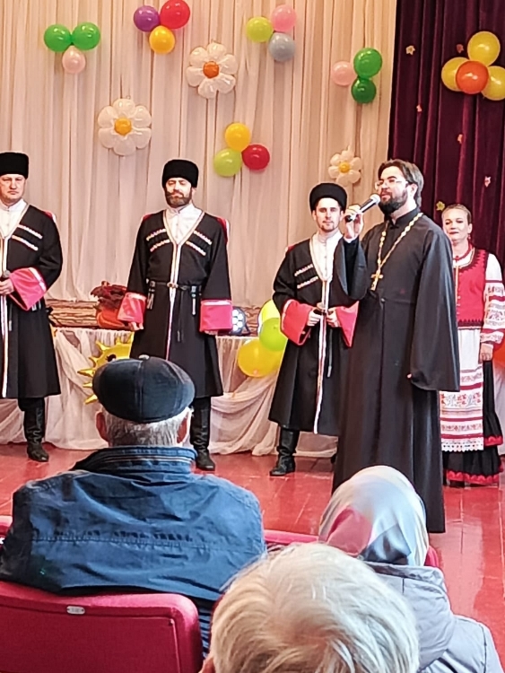 К поздравлениям также присоединился настоятель Митрофановского храма с.Панино иерей Иоанн Твердохлеб и сыграл вальс "Над волнами" на аккордеоне.